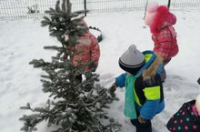 В раннем возрасте вся деятельность ребенка подчинена одной ведущей потребности - познания окружающего мира и себя в нем. Главным средством удовлетворения этой потребности является сенсорное (чувственное) освоение действительности за счет ощущений, чувственных восприятий, и наглядных представлений. Во время проведения прогулок воспитатель обращает внимание детей на окружающую природу. Не спеша, давая внимательно рассмотреть то, о чем говорит взрослый, что рассказывает о природных изменениях. Вот и малыши знакомятся и рассматривают посаженные на участке елочки.
