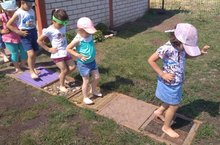 Для укрепления здоровья детей в летний период в средней группе "Золотые зёрнышки" была обновлена «Тропа здоровья». Это один из очень удобных здоровье-сберегающих методов, применяемых сегодня в детском воспитательном процессе. Тропа здоровья состоит из естественных, природных материалов: песка, еловых шишек, камней. Тропа здоровья оборудована таким образом, чтобы детские босые ножки могли пройтись по разным на ощупь поверхностям, которые будут массировать ступни. Как известно, на ступнях человека расположено очень много активных зон, связанных с различными органами. Оказывая на них воздействие, можно повысить иммунитет ребенка, снять стресс и улучшить его общее психоэмоциональное состояние. «Тропа здоровья» — это место, где ребенок активно укрепляет свое здоровье.