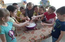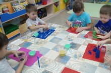 Кинетический песок является очень распространенным игровым материалом в развивающей предметно - пространственной среде современного ДОУ. Этот песок приятен на ощупь. При работе с таким песком ребенок испытывает другие тактильные ощущения, нежели при контакте с обычным песком или пластилином. Еще одна особенность кинетического песка - он имеет разный цвет. Увлекательная игра в песок развивает мышление, память, внимание, воображение. Кроме того, формируется положительный эмоциональный настрой, усидчивость, навыки практического экспериментирования. У воспитанников средней группы "Жемчужинки" есть любимые игры с кинетическим песком - это "Куличики", "Прятки", "Формочки".