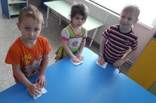 Трудовое воспитание – это подготовка ребенка к жизни, к участию в общественно полезном труде, формирование активной целеустремленной личности. Дошкольной возраст является началом трудового воспитания ребенка. Дети средней группы «Самоцветики» проявляют живой интерес к любым видам труда. Умеют работать сообща, дружно. Было дано поручение «Мытье столов». Цель заключалась в том, чтобы научить помогать младшему воспитателю, поддерживать в порядке и чистоте столы в групповой комнате: протирать их влажной тряпочкой. Наши ребята, молодцы! За любое поручение берутся с охотой, всегда доводят начатое дело до конца.