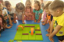 Современные дети живут в эпоху активной информатизации, компьютеризации и роботостроения. В нашем детском саду активно развивается робототехника. В группе «Звёздочки» будущие ученые самостоятельно составляют программу для «Робомыши», позволяющую той найти сыр. Ребенок при помощи карточек – команд последовательно выкладывает путь для робота – мыши. Так воспитанники знакомятся с робототехникой и программированием.