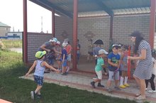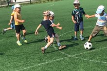Сегодня дети старших групп на спортивной площадке ледового дворца закрепили знание летней игры в футбол. Во время игры дети овладели основными приемами техники: удар, передача, ведение. Воспитанники получили массу удовольствия от игры.