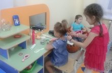 Игра –самое главное занятие в жизни ребенка. А игры, которые создают дети самостоятельно, занимают совершенно особое место. Называются они сюжетно-ролевыми. В них детьми воспроизводиться все, что они видят вокруг: разные проявления жизни, деятельность взрослых. Сюжетная игра не требует от ребенка реального продукта, в ней все условно, все понарошку, как будто. В такой игре есть сюжет и роли. Чаще всего ребенок принимает на себя роль взрослого. Роль выражается в действиях, речи, мимике, пантомиме. Дети средней группы «Звёздочки» очень любят сюжетно-ролевые игры. Ребятам нравится подражать взрослым, чувствовать себя уже большими и самостоятельными. Участие в таких играх, помогает ребенку развивать воображение, мышление, ориентироваться в отношениях среди людей. Малыши любят играть в «дочки-матери», «магазин», «парикмахерская». Но больше всего им нравится игра «Парикмахерская». Играют они в эту игру с удовольствием. Хорошее настроение было обеспечено, ведь в такой игре не возможно не принять участие.