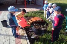 Так во вторую половина дня воспитанники средней группы «Волшебники» вместе с воспитателем: Эльвирой Нурлахметовной с огромным энтузиазмом трудились на детской, игровой площадке.