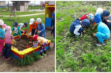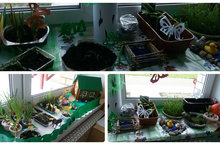 В конце апреля воспитатели вместе с детьми возрастных групп посадили огород на подоконнике. В каждой группе – свой дизайн огорода на подоконнике: где-то среди горшков с рассадой извивается плетень, кто-то из юных ландшафтных декораторов отправил «пастись» в зелёную зону игрушечных коровок, третьи озадачились созданием авторских горшков для каждой луковки. Это место стало самым «волшебным» в группах, от него нельзя отвести глаз.
