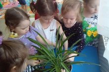 В средней группе «Волшебники», воспитатель Барсукова И.А., подгруппа детей вместе с воспитателем учились ухаживать за комнатными растениями. Дети усвоили, как поливать комнатные растения в зависимости от условий их обитания в естественной среде. Ребята знакомились с особенностями строения растений, разнообразием листьев, стеблей.