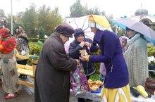 В благотворительной ярмарке приняли участие образовательные учреждения, в том числе и наш детский сад. Угощали бабушек и дедушек пирогами и блинами, поили чаем с вареньем
