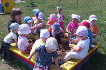 Игры в песочнице – любимое занятие детей группы «Золотые зернышки» и "Жемчужинки". Здесь кипит настоящая работа: выпекаются куличи, пирожки, строятся замки. Песок – это богатый возможностями природный материал, податливый, способный принимать любые формы. Он дает ребенку энергию природы, при этом забирает негативную психологическую энергию и преобразует ее в положительную.