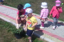 Совсем недавно и у нас в саду проходил детский трудовой десант. Детки вместе с помощником воспитателя: Марией Николаевной с огромным энтузиазмом трудились на детской, игровой площадке.