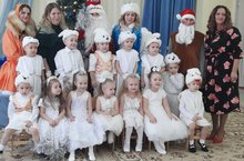 Дети пришли на представление нарядные: мальчики в костюмах снеговиков, а девочки в костюмах елочек, весёлые в предвкушении праздника. И их надежды оправдались. Воспитатели и весь персонал, участвовавший в новогоднем представлении, проявили себя хорошими артистами, показав всё своё творческое мастерство, артистизм, задор и организаторские способности.