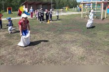 В нашем детском саду прошел традиционный праздник «Сабантуй». Ребята соревновались в силе, ловкости и выносливости, поиграли в игры соревновательного характера: «Бой мешками», «Конные скачки», «Бег в мешках», «Кто быстрей донесёт воду в пиалах», «Юрта», «Перетяни канат».