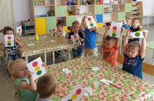 Малыши нашего сада познакомились со светофором. Закрепили значение цветов светофора: красный, желтый и зеленый. Сыграли в подвижную игру «Светофор». Закрепили пройденное занятие аппликацией «Мой веселый светофор»
