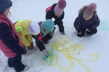 Зимний сезон - время для уличного творчества. Вся земля покрылась белым снегом, как будто специально приглашая нас показать свое творчество и умение. Рисование на снегу - очень занимательное занятие для детей. Это отличный способ пробудить в ребёнке интерес к творчеству. Оказалось, рисовать на снегу легко и просто. Вооружившись палочками, баллончиками с цветной водой ребята создавали неповторимые шедевры. Рисование на снегу увлекло дошколят, помогло весело провести время на свежем воздухе.