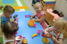 Сюжетно-ролевая игра — это основной вид игры ребенка дошкольного возраста. Характеризуя ее, С. Я. Рубинштейн подчеркнула, что эта игра есть наиболее спонтанное проявление ребенка и вместе с тем она строится на взаимодействии ребенка со взрослыми. Ей присущи основные черты игры: эмоциональная насыщенность и увлеченность детей, самостоятельность, активность, творчество. Воспитанники первой младшей группы «Золотые зёрнышки» очень любят играть в сюжетно-ролевые игры, а особенно «Кухню». Воспитатель Мещанова А.А. способствует развитию и обогащению сюжета игры. Эта игра развивает творческое воображение, инициативу, организаторские способности, закрепляет знания детей о правилах поведения за столом.