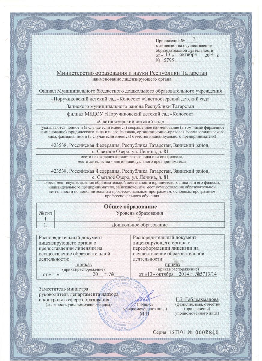 МБДОУ «Поручиковский детский сад «Колосок» Заинского муниципального района РТ (реорганизация)