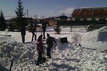 Учащиеся нашей школы приняли участие в субботнике. ребята ворошили снег на территории школы