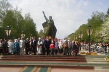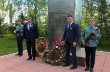 Руководство района возложило корзину цветов к памятнику Солдата, стоящему на территории школы.