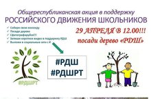 Сегодня 29 апреля в 12.00 ч общеобразовательные организации Заинского района приняли участие в общереспубликанской акции в поддержку Российского движения школьников «Посади дерево «РДШ».