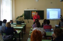 - с темой «Развитие мотивации к творческому труду, работе на результат по английскому языку в условиях ФГОС» выступила учитель высшей категории МБОУ «Светлоозерская ООШ», Пудова Надежда Дмитриевна.