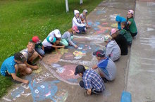 Сегодня в нашем лагере состоялся конкурс рисунков на асфальте " Природа и мы". Это мероприятие было посвящено пропоганде здорового образа жизни. Рисунки были яркие и красочные.
