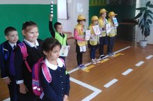 Сегодня участники отряда ЮИД провели с учащимися 1 класса практическое занятие по ПДД. Учащимся объяснили как вести себя на улице, правила пешехода и поговорили на тему "Засветись в темноте и стань заметным на дороге"