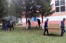 Сегодня в школе прошел субботник. Обучающиеся 8-9 классов на пришкольной территории убрали опавшую листву и мусор.