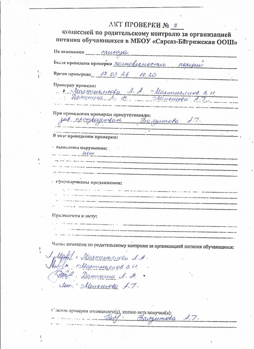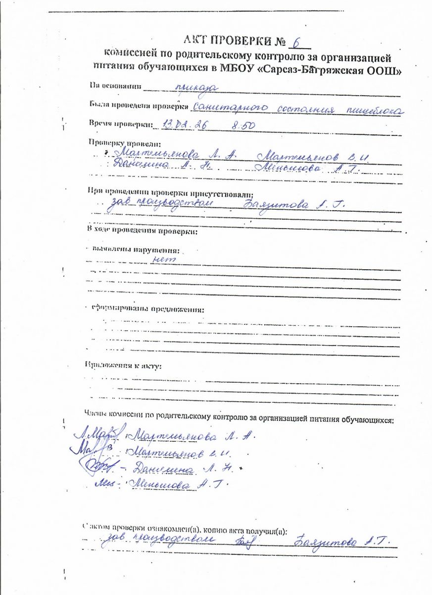 Приказ о создании комиссии по контролю за организацией и качеством питания