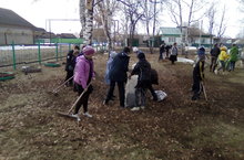 Сегодня все учащиеся нашей школы вышли на уборку школьной территории.