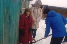 Учащиеся 9 класса 21 января 2016 года участвовали в акции уборки снега "Помощь одиноким пожилым людям".