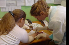 Фельдшер ФАП нашего села Черяшова Л.А. ежемесячно приходит на осмотр учащихся