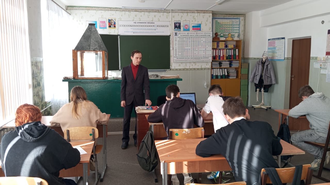 Занятие с учащимися аграрного 9 класса в очном формате урок-практикум провели представители Казанского государственного аграрного университета: Шагивалиев Ленар Рифатович, кандидат экономических наук, доцент кафедры Философии и права и Сафиуллин Нияз Азатович, старший преподаватель кафедры Управления государственной и муниципальной службы.