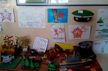 С 10 по 17 марта проходила методическая неделя учителей начальных классов. В холле третьего этажа была организована выставка рисунков и поделок к 70-летию Победы в ВОВ.