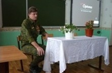 Замечательный урок Мужества был проведен в 9 и 11 классах. На урок был приглашен участник афганской войны, воин- интернационалист Галяминский С.Д. Учащиеся 9-го класса подготовили монтаж стихотворений, а классный руководитель Хабибрахманова Л.М. показала презентацию о героях Отечества. Сергей Дмитриевич рассказал ребятам, как проходила его служба в Афганистане. Скупы слова, многое кроется за признанием "Служба была нелегкой, но мы привыкали". Он был призван в 1980 г., служил водителем в разведроте.Был такой случай. Колонна машин с советскими бойцами ехала по горной дороге, навстречу выбегает боевик, и в упор стреляет в первую машину из пулемета. Такой фанатизм непонятен. Это была полупартизанская война. "Нас послали туда воевать, и мы должны были с честью выполнять прказ. Скажу, что мирновские ребята, которые были в Афганистане, с честью прошли этот путь. "- делился с воспоминаниями воин - интернационалист. Проникновенной песней о воине- афганце, исполненной под гитару Ворониным И., было завершено это мероприятие.