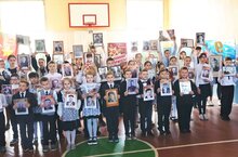 Торжественная линейка, на которой выступили учащиеся 7-го класса, посвящена акции "Бессмертный полк". К акции присоединились и другие учащиеся, в том числе дети бойцов СВО.