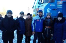 Сегодня учащиеся школы имели уникальную возможность встретиться с призерами гонки "Париж-Дакар" представителями команды "КАМАЗ-МАСТЕР": пилотом команды А. Мардеевым и главным инженером Ф.Бадретдиновым, рамках молодежной акции "Вместе, вперед!"