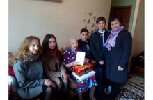 25 апреля директор нашей школы Бареева З.Г. с волонтерами-старшеклассниками торжественно поздравляли и вручали подарочные наборы вдовам участников Великой Отечественной войны, проживающих в нашем микрорайоне. Посещение ветеранов - это воспитание чувства патриотизма, благодарности к погибшим в годы