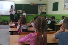 Сегодня, 24 января, в 1 В классе прошел открытый урок по татарскому языку. В гостях на уроке были дети из детского сада «Лесная сказка». Учащиеся 1 В класса учились правильно читать слоги, слова. Воспитанники детского сада вместе с первоклассниками отгадывали загадки, читали скороговорки.