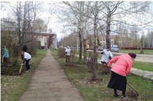 Ребята убрали залежалые прошлогодние листья из под деревьев, и подмели дорожку, ведущую к магазину.