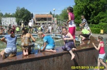 Сегодня на Бульваре Победы прошло мероприятие " Битва титанов у фонтана" .Учавствовал весь лагерь.Самые активные ребята получили призы.