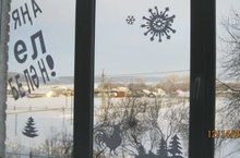 Быел безнең укучылар тәрәзәләргә Яңа ел рәсемләрен ябыштырып чыктылар. Мәктәпнең эчке ягыннан да, тыштан да тәрәзәләрдәге рәсемнәр бик матур булып күренеп торалар.