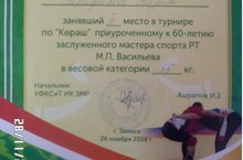 27 ноября состоялся турнир по "Куреш" приуроченный к 60-летию заслуженного мастера спорта РТ М.П.Васильева, где приняли участие представители 8 района. Участников было 118. Наши ученики заняли призовые места, а наш район стал победителем. Молодцы, ребята!