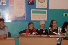 Сармашбаш мәктәбендә урта класс укучылары чисталык дәресендә. Дәресне Фәридә Шаймухаметовна үткәрә.
