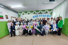 Сармашбаш төп белем мәктәбендә "Белем бәйрәме". Бездә кунакта Мусин Фәрит Харисович, ул безне бәйрәм белән котларга килгән.