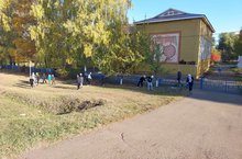 Экологик икеайлык кысаларында мәктәбебез укучылары эшне башладылар. Алар мәктәп территориясен коелган яфраклардан, чүп чардан чистарталар.