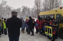 Район инспекторы Иванов И.белән бергә укучылар юл йорү кагыйдәләрен искә тошерделәр.