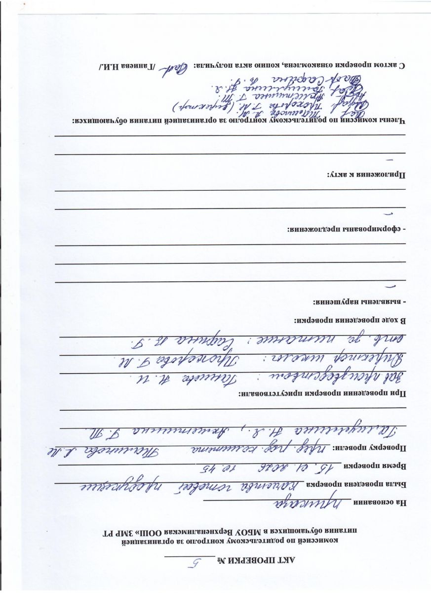 Акт обследования пищеблока за январь