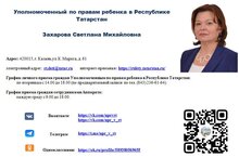 Каждый вторник с 14:00 до 18:00 прием осуществляется Уполномоченным по правам ребенка в Республике Татарстан (по предварительной записи):
